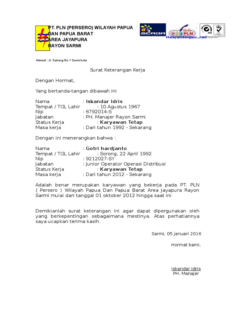 Contoh surat keterangan domisili perusahaan contoh surat keputusan pengangkatan karyawan 4 14 contoh surat lamaran kerja menjadi guru terlengkap. Contoh surat keterangan kerja pegawai negeri. Status karyawan kontrak diberikan untuk mengetahui dengan baik dan jelas bagaimana kinerja karyawan. Membuat surat referensi bank dengan menggunakan surat pernyataan kerja karyawan.
